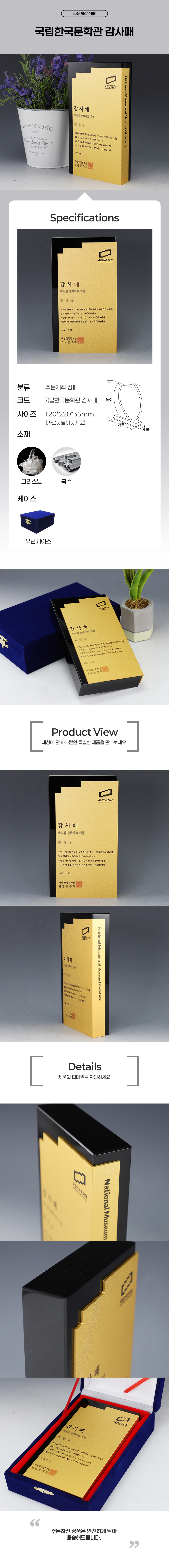 국립한국문학관 감사패 주문 제작 제품입니다.